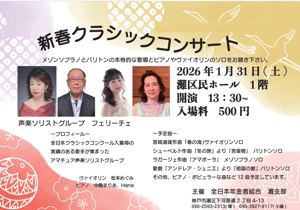 1/31の新春コンサートですが、諸事情により延期となりました。