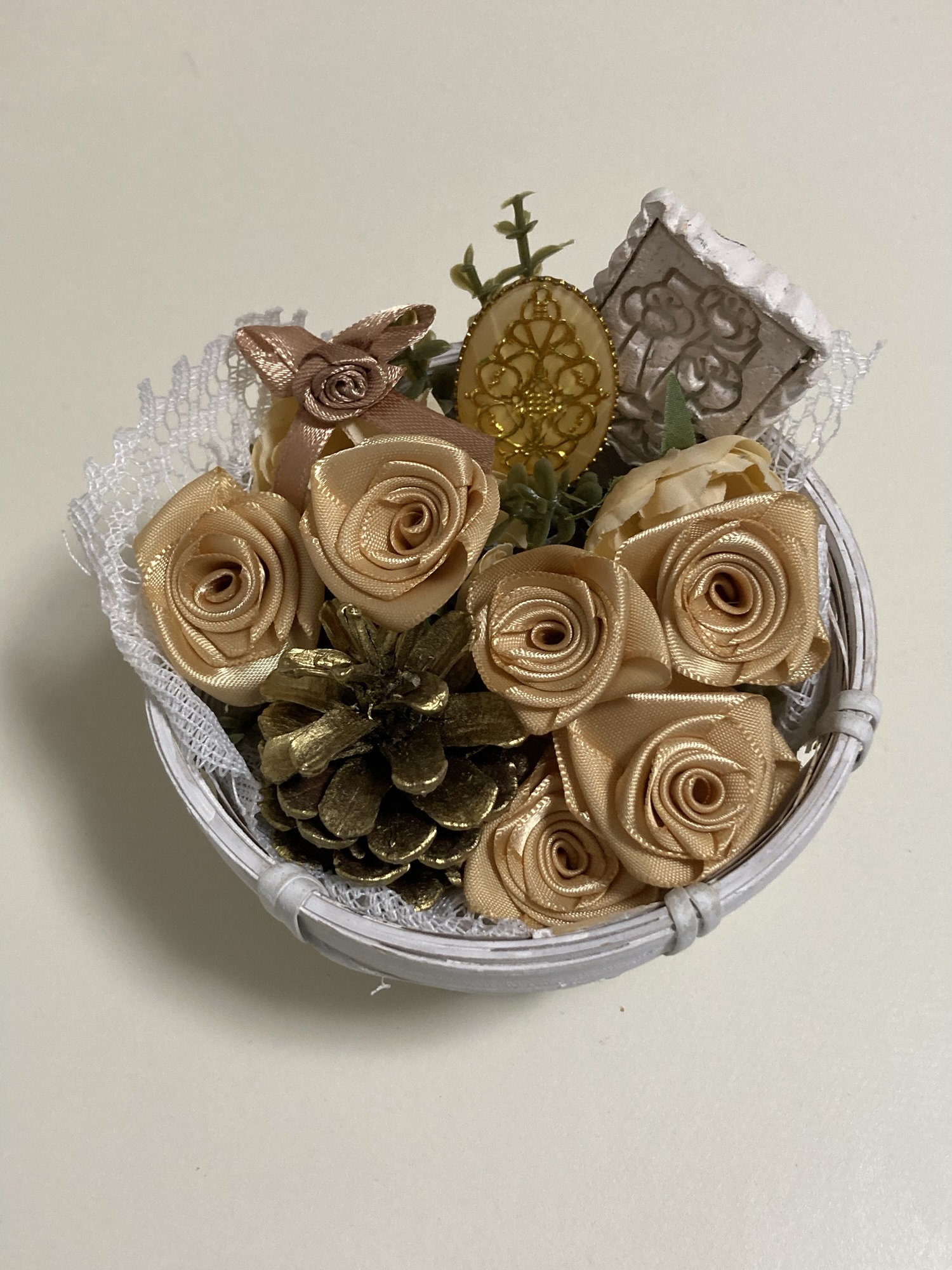 ゴールドのサテンリボンで作ったらさらにゴージャス感が出て美しくなりました😍